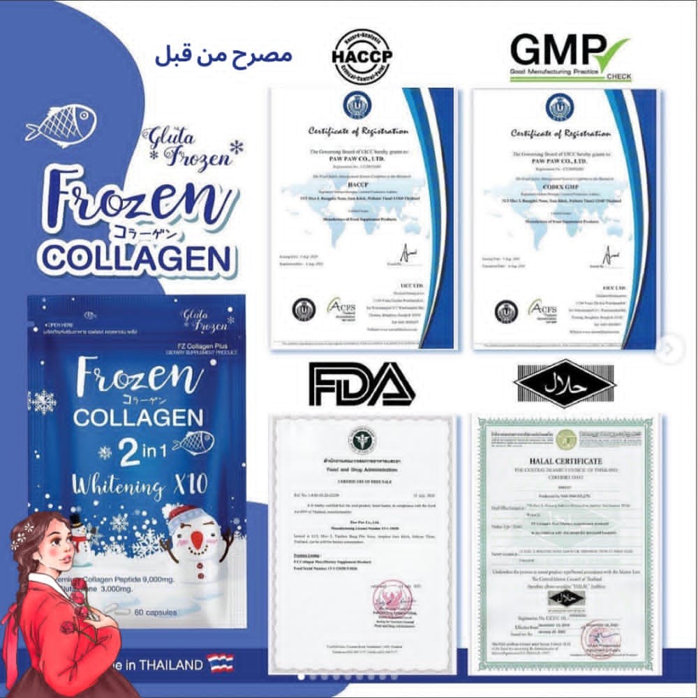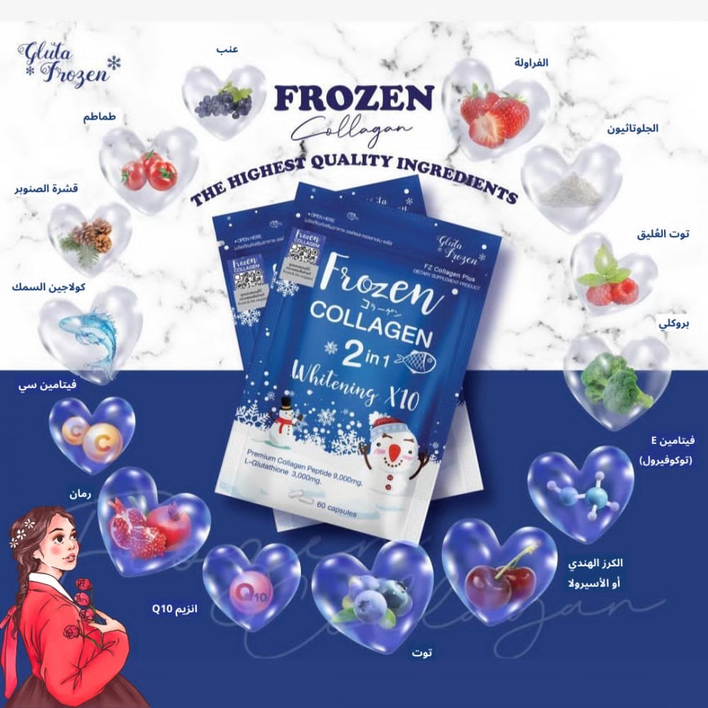 منتج Frozen Collagen يمنحك الجمال من الداخل، بفضل تركيبته الغنية بالكولاجين البحري والغلوتاثيون الطبيعي، ليعيد لبشرتك شبابها ويمنحك إشراقة لا تحتاج فلتر! 💎
